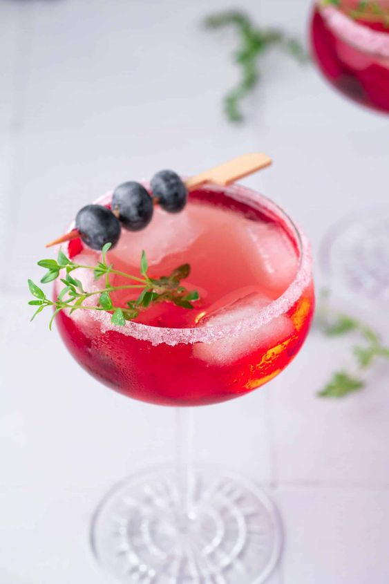 - To add an appealing touch, garnish the cocktail with a few fresh red or black berries